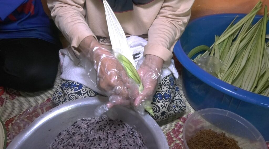 Ruslina berkata, dia mempelajari kemahiran membungkus ketupat berbentuk jantung itu daripada arwah ibunya, Che Minah Yusof 40 tahun lalu.