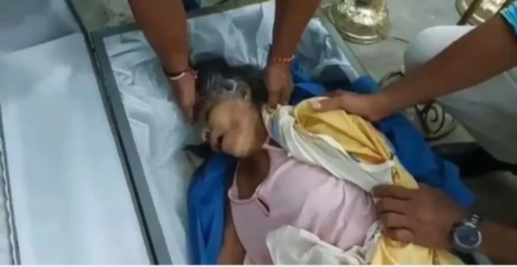 Ahli keluarga membuka keranda itu kira-kira 4 petang untuk menukar pakaian wanita itu sebelum majlis pengebumian.